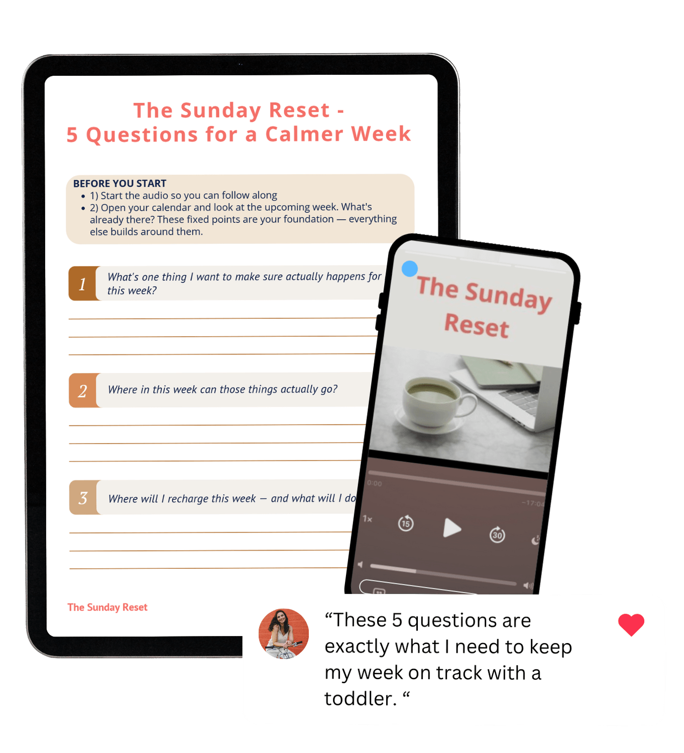 A 10-minute audio and PDF planning system (that I usually charge for!) that gets the things that matter into your calendar — and keeps them there, even when your toddler has other plans.